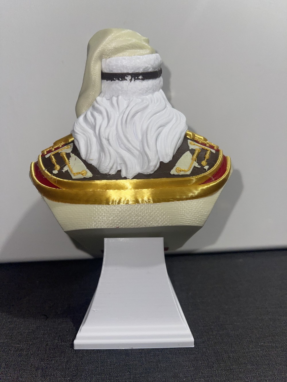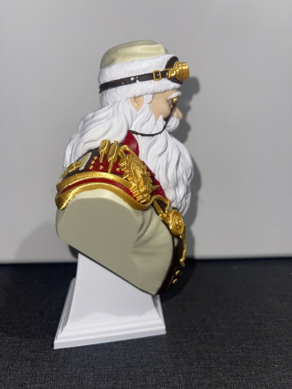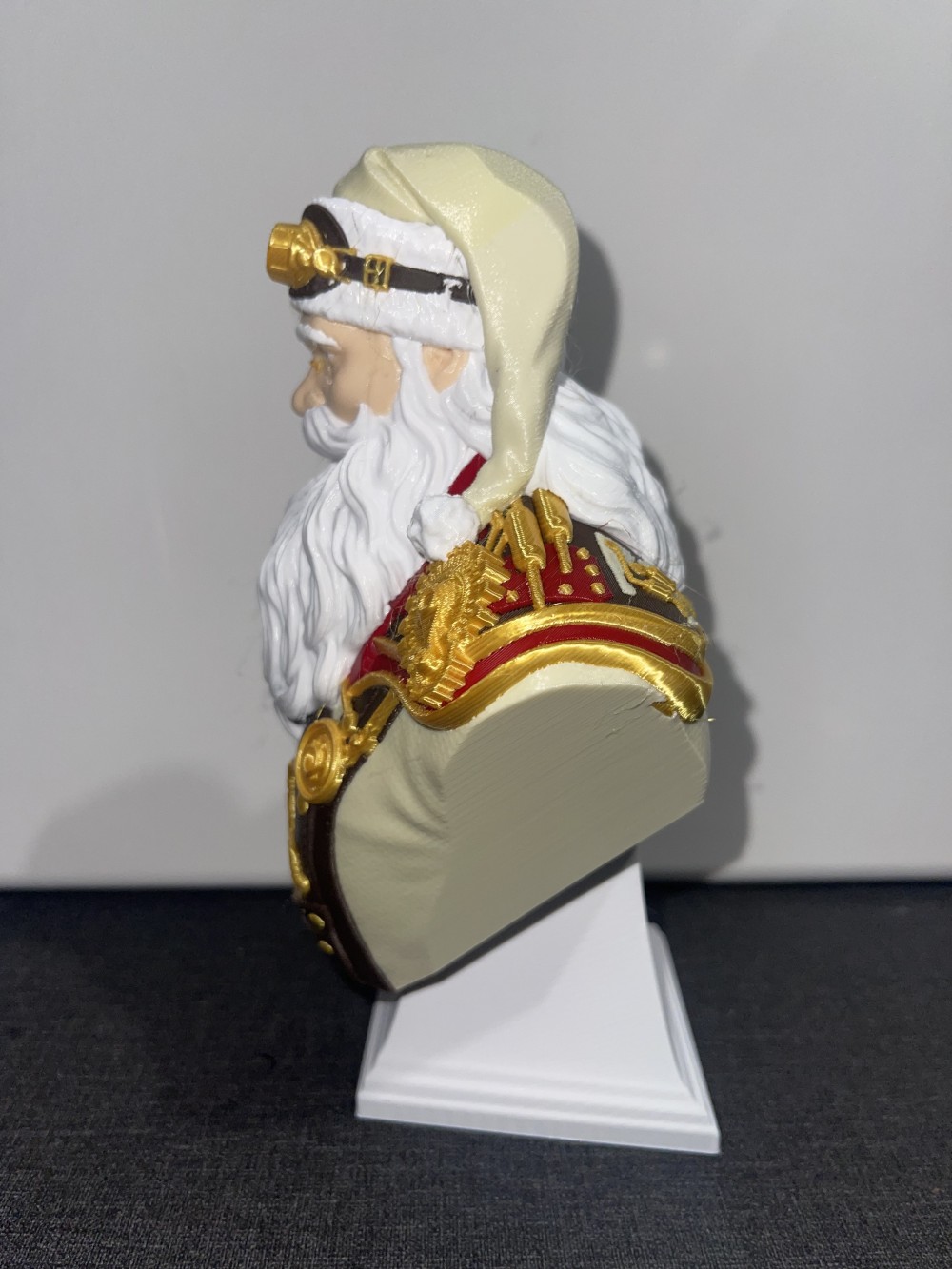 Expertly 3D-printed with high-resolution detail, this bust showcases Santa’s mechanical top hat, gear-trimmed coat, and expressive face framed by a finely layered beard. Each piece embodies the perfect blend of old-world craftsmanship and modern technology — designed, printed, and finished with precision and care.