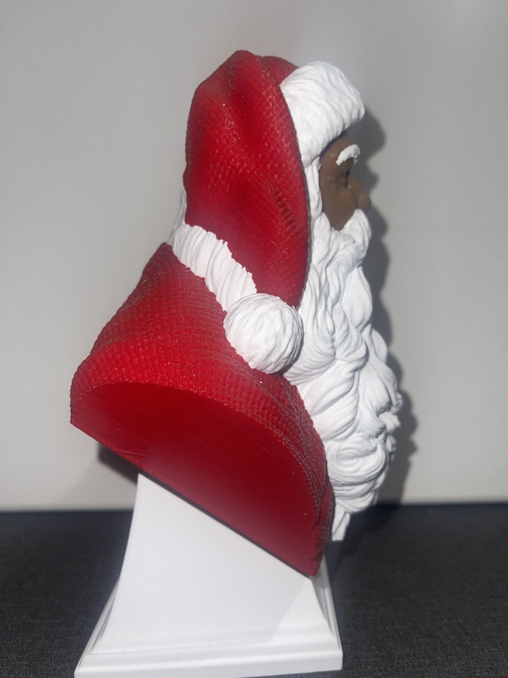 Every detail — from Santa’s twinkling eyes and full, flowing beard to the trim of his classic red hat — is faithfully reproduced using high-resolution 3D printing technology. Printed in durable PLA with precision and care, this piece blends traditional holiday artistry with modern craftsmanship, making it a perfect addition to your holiday décor or a thoughtful gift for collectors and Christmas enthusiasts alike.